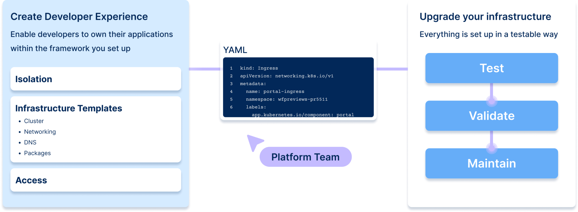 75% fewer support requests for infra/platform teams