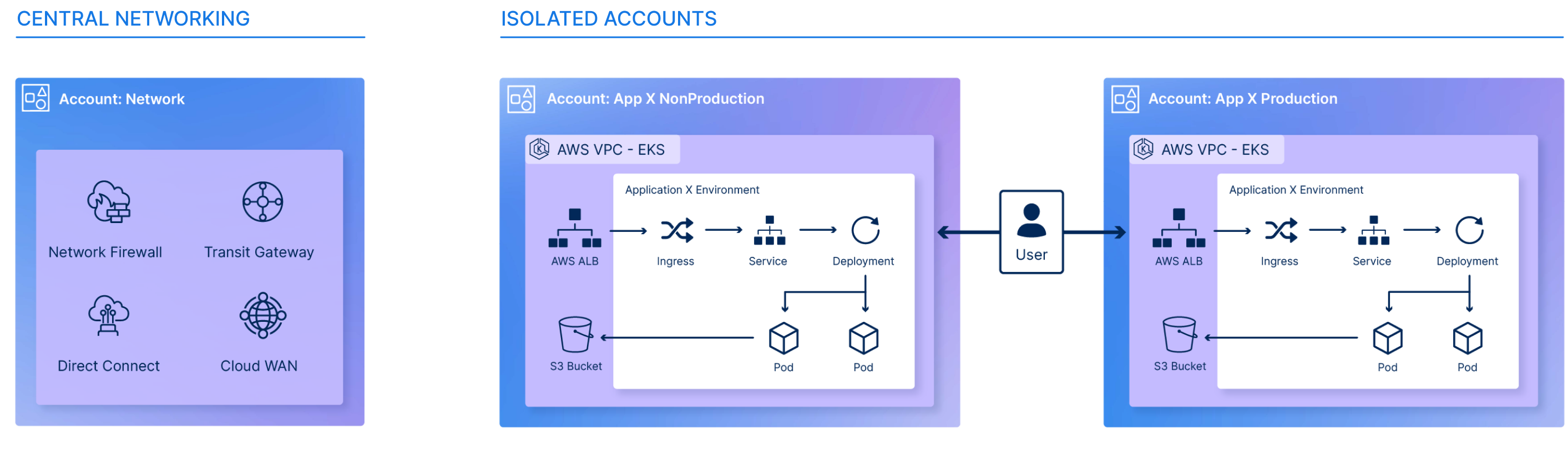 Give teams their own dedicated accounts for specific product lines so they can release to production quickly. Set them up for success with everything they need out of the box